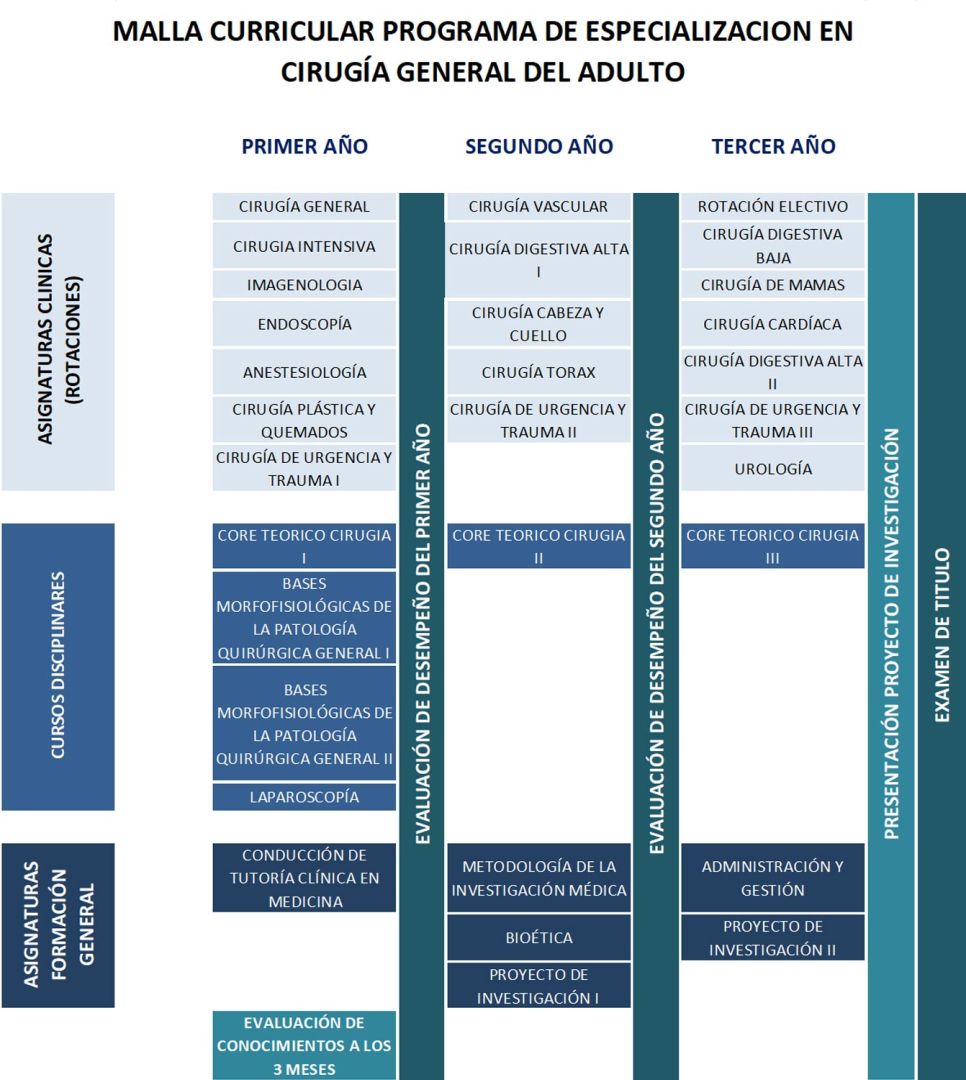 El programa de Cirugía General está orientado a formar especialistas con las competencias necesarias para la resolución de patologías quirúrgicas frecuentes, tanto electivas como de urgencia. Su proceso formativo se desarrollará en diversos campos clínicos, tanto públicos como privados, con un equipo de especialistas de alto nivel que guiarán al estudiante en la adquisición de las competencias necesarias para desempeñarse de forma autónoma, con una visión integral del sistema de salud y los recursos disponibles. Se enfatizará la adquisición de una sólida base científica y clínica, así como el desarrollo de habilidades y destrezas quirúrgicas. La formación estará basada en principios de ética y profesionalismo, con respeto por la vida y la dignidad de las personas, promoviendo el trabajo en equipo, la administración eficiente de los recursos y la autonomía en el aprendizaje. Esto se traducirá en un proceso de formación continua y perfeccionamiento permanente.